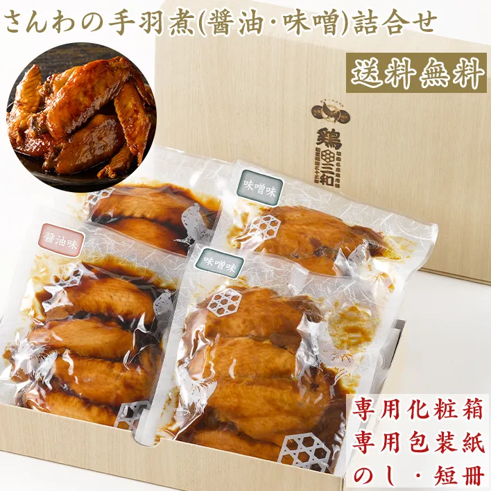 さんわの手羽煮 手羽先煮込み 詰め合わせ 8本 醤油味 味噌味 名古屋 お土産 中部